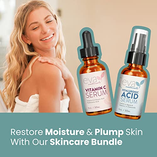 Pacchetto per la Cura della Pelle Idratante e Illuminante di Eva Naturals - Include Siero all'Acido Ialuronico e Siero con il 20% di Vitamina C - Ripristina l'Umidità Persa