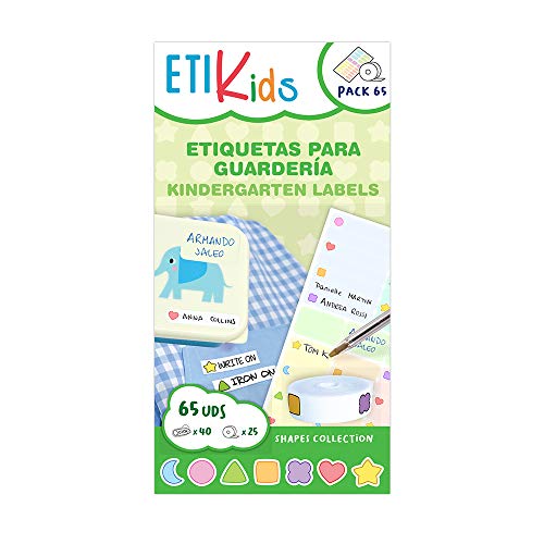 ETIKIDS PACK: 40 adesivi + 25 tessuto etichette personalizzabili per la marcatura di oggetti per la scuola, libri, libri.