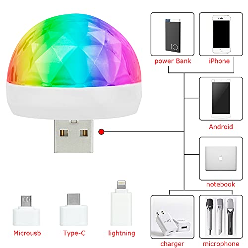 2 Pacchi Mini luce da discoteca USB,mini luce stroboscopica portatile, luce dell'atmosfera per auto a LED multicolore, adatta per feste di Natale,piscina,club,feste da ballo,compleanno,matrimonio