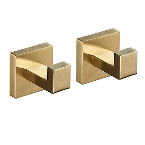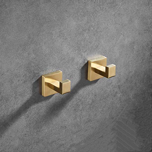 2 pacchi Porta asciugamani Porta accappatoio per bagno Forma quadrata Montato a parete, spazzolato dorato, Beelee BA19907BG-2