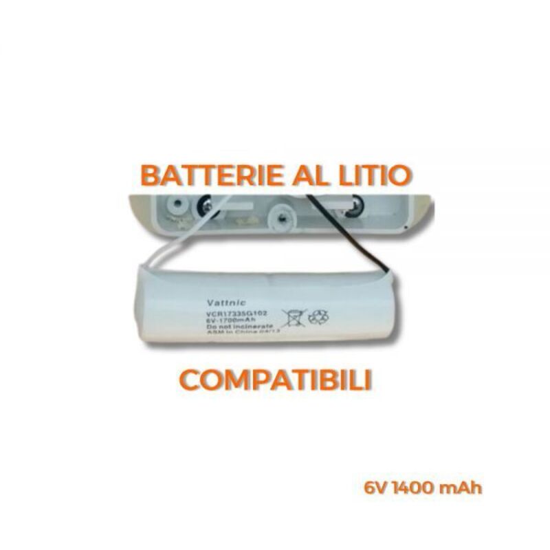 SAFT PACCO BATTERIE LITIO COMPATIBILE Pacco batteria Litio, 6V 1400mAh formata da 2 batteria CR123 Primary lithium-thionyl chloride (Li-SOCl2) con cavo liberi Dimensioni: diam. Compatibile con sistemi di sicurezza
