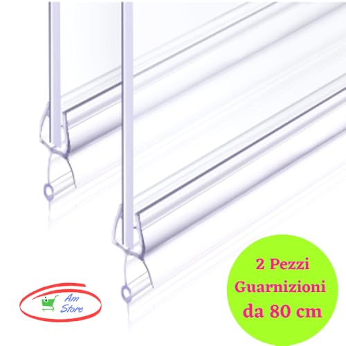 Pacco 2 Guarnizione Vetro Porta Box Doccia, Lunghezza 80 Centimetri, PVC, Spessore Vetro da 6 a 8 Millimetri, No Adesivo o Colla, Facile Installare