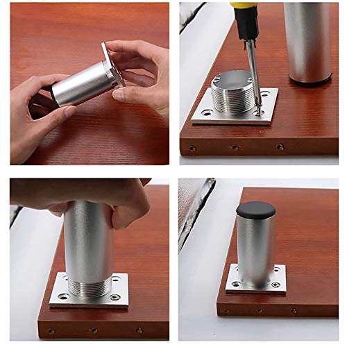 Pacco Da 4 Piedino Regolabile Per Mobili, Regolabili Gambe Per Mobili In Lega Di Alluminio Rotondo Piede Di Ricambio Supporto, Per Cabinet Divano Letto Tavolo(Color:silver,Size:30cm/12in)
