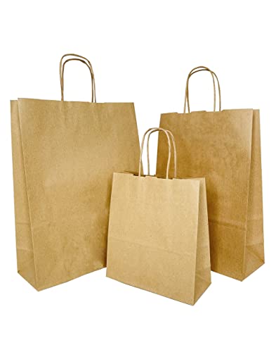 Pacco da 25 Shopper in carta da 100 GR. | Colore Avana | Manico in Carta Ritorta | Dimensione: 26x12x35 cm | Disponibile in Varie Misure e Anche nel Colore Bianco