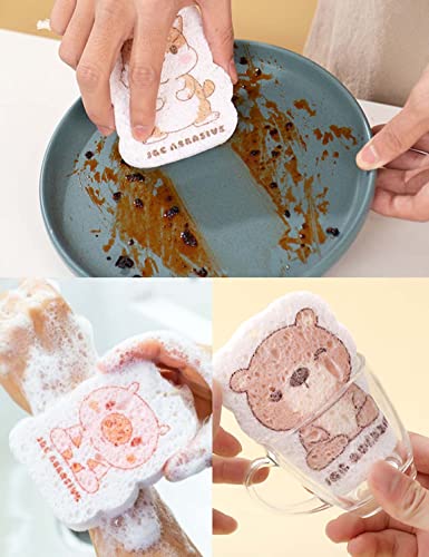 Pacco da 9 - Waikas spugnette, spugne riutilizzabili da cucina, spugne per la pulizia della pasta di legno compressa dei cartoni animati