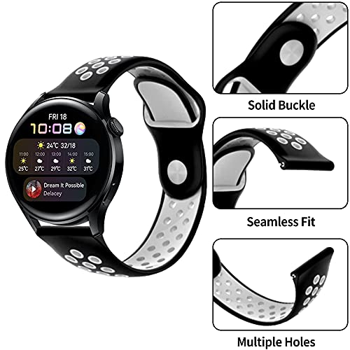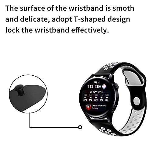 PaceBid Cinturino Compatibile con Huawei Watch 3, Regolabile Cinturino di Ricambio, Morbido, Traspirante, Resistente al Sudore Sport in Silicone Cinturino per Huawei Watch 3- (Black-White)