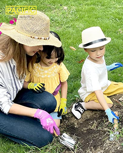 PACIFIC 3 Paia Guanti da Giardinaggio per Bambini da 3 a 6 anni, Guanti da Giardino per Bambini, Guanti da Lavoro Rivestiti in Gomma per Ragazzi e Ragazze, Diversi Colori, XXXS