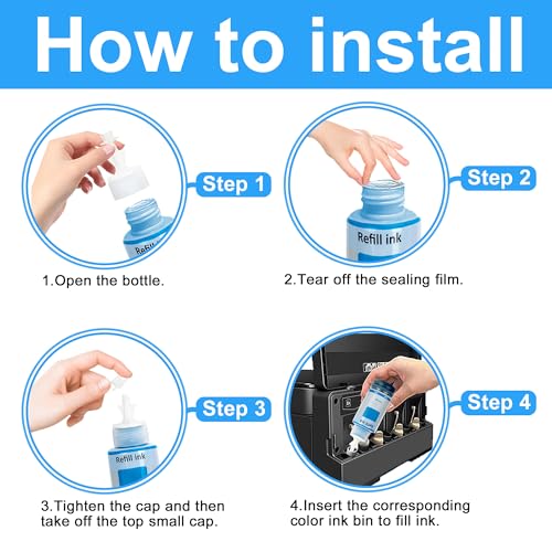 ✅【Alta Capacità】Flacone d'inchiostro di capacità extra-large, intervallo di sostituzione più lungo. Include 4 flaconi di inchiostro: Fino a 4500 pagine per flacone d'inchiostro nero in 70 ml;