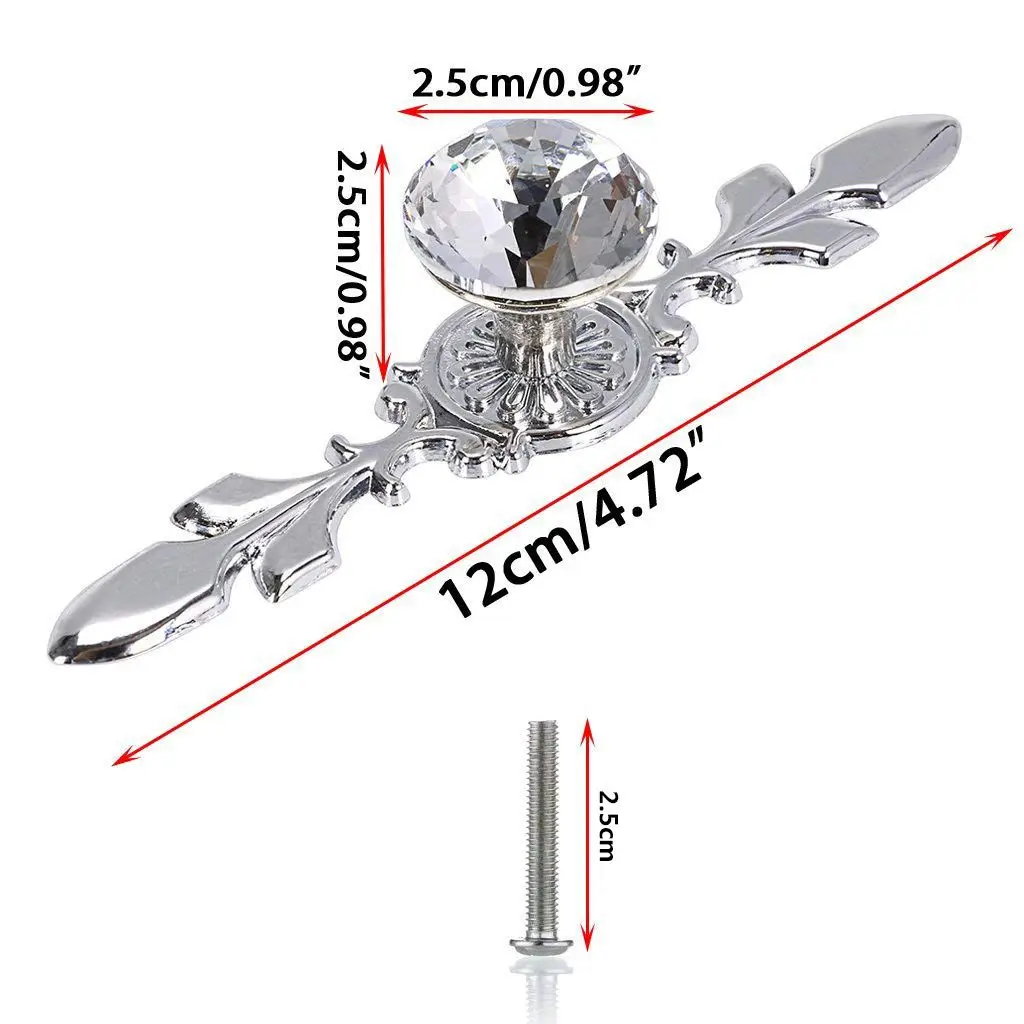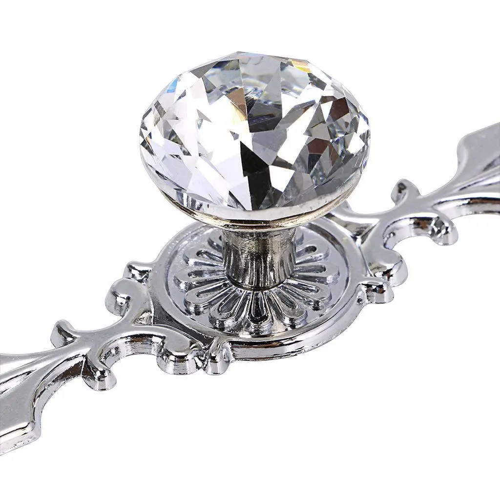5 Pack Crystal Drawer Knobs with Silver Plate - Diamond Shape Cabinet Drawer Knob Drawer Pull Handle Cupboard Wardrobe Drawer