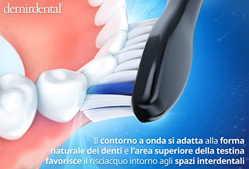 Non tutti gli spazzolini sono uguali: setole sagomate in base alla forma naturale dei denti, profili appiattiti all'esterno per proteggere le gengive o superfici rialzate al centro per una maggiore superficie di contatto durante lo spazzolamento. Dettagli complessi e costosi, ma assolutamente standard per demirdental, per ottenere i massimi risultati di spazzolamento nella cura dentale quotidiana