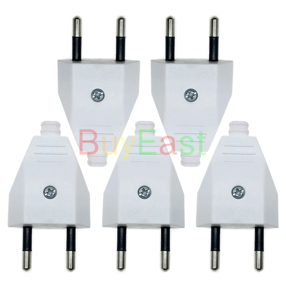 Pack 5 - EU Europlug Rewireable DIY Main Power Plug AC 100~250V 2.5A White Black
