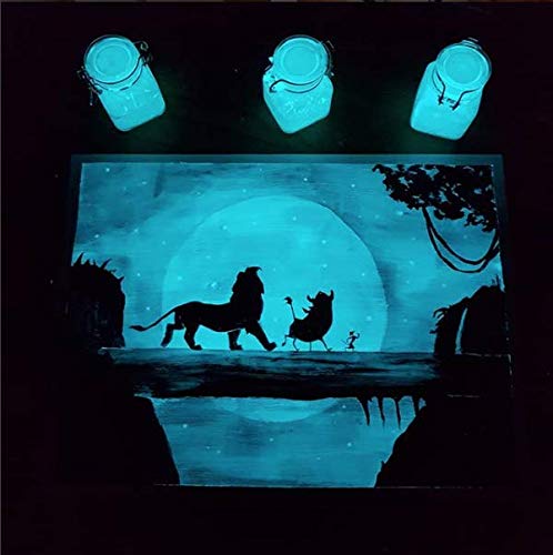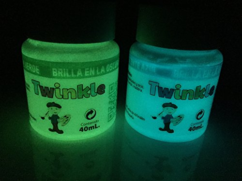 Prova le nostre celebri temperas base acqua completamente inocuas, sono quasi trasparenti con luce, una verdosa e altra blu in buio (controllare foto di come si vede con e senza luce)