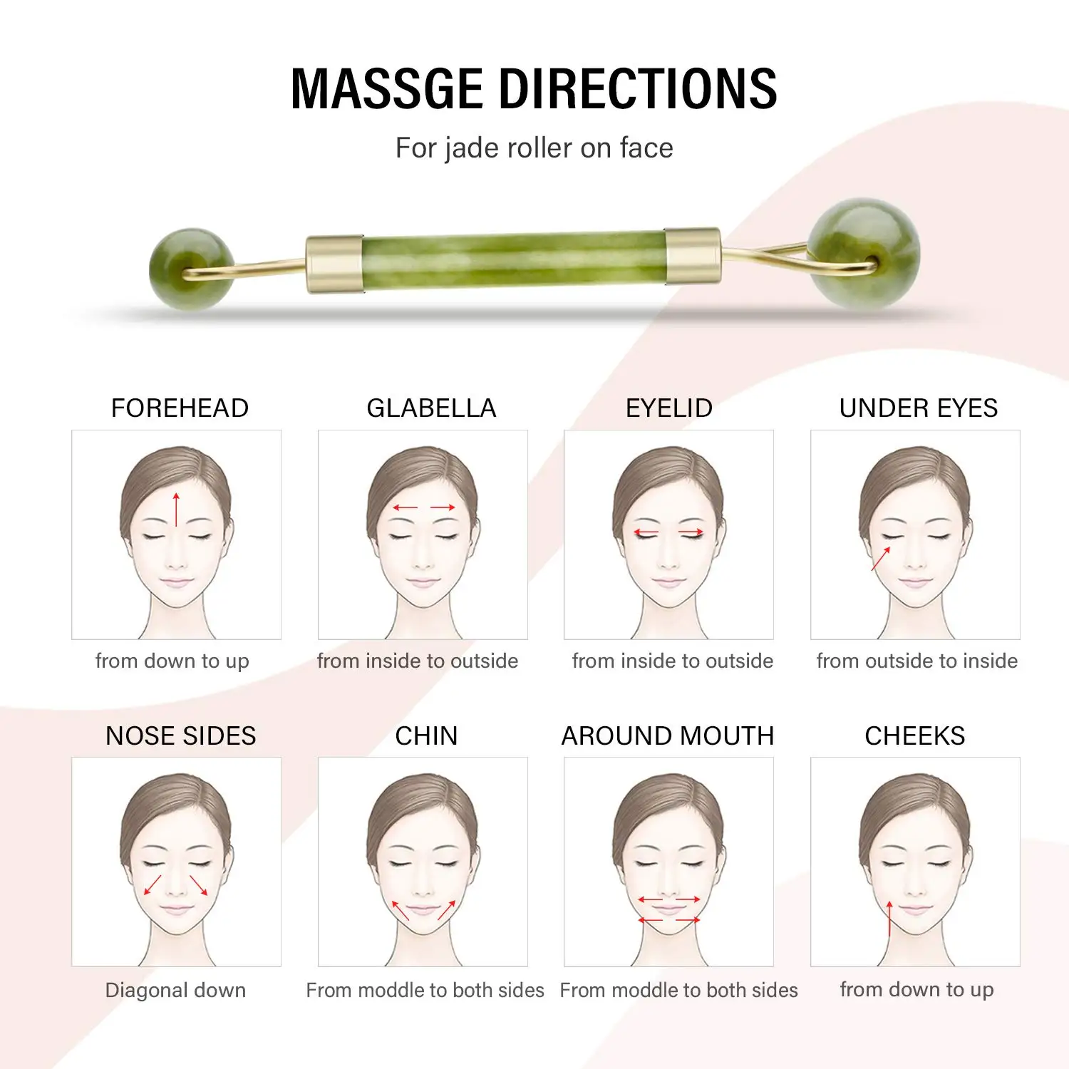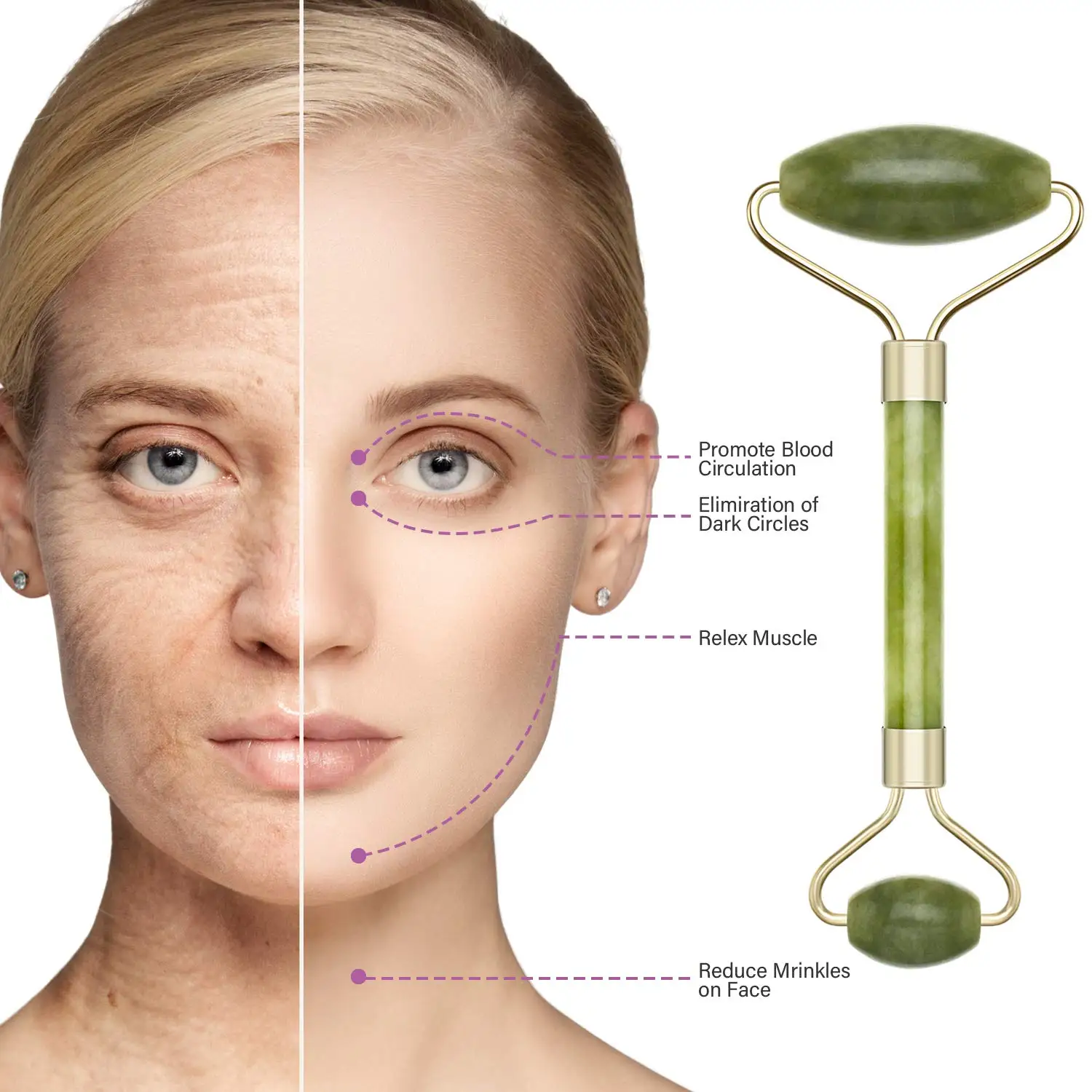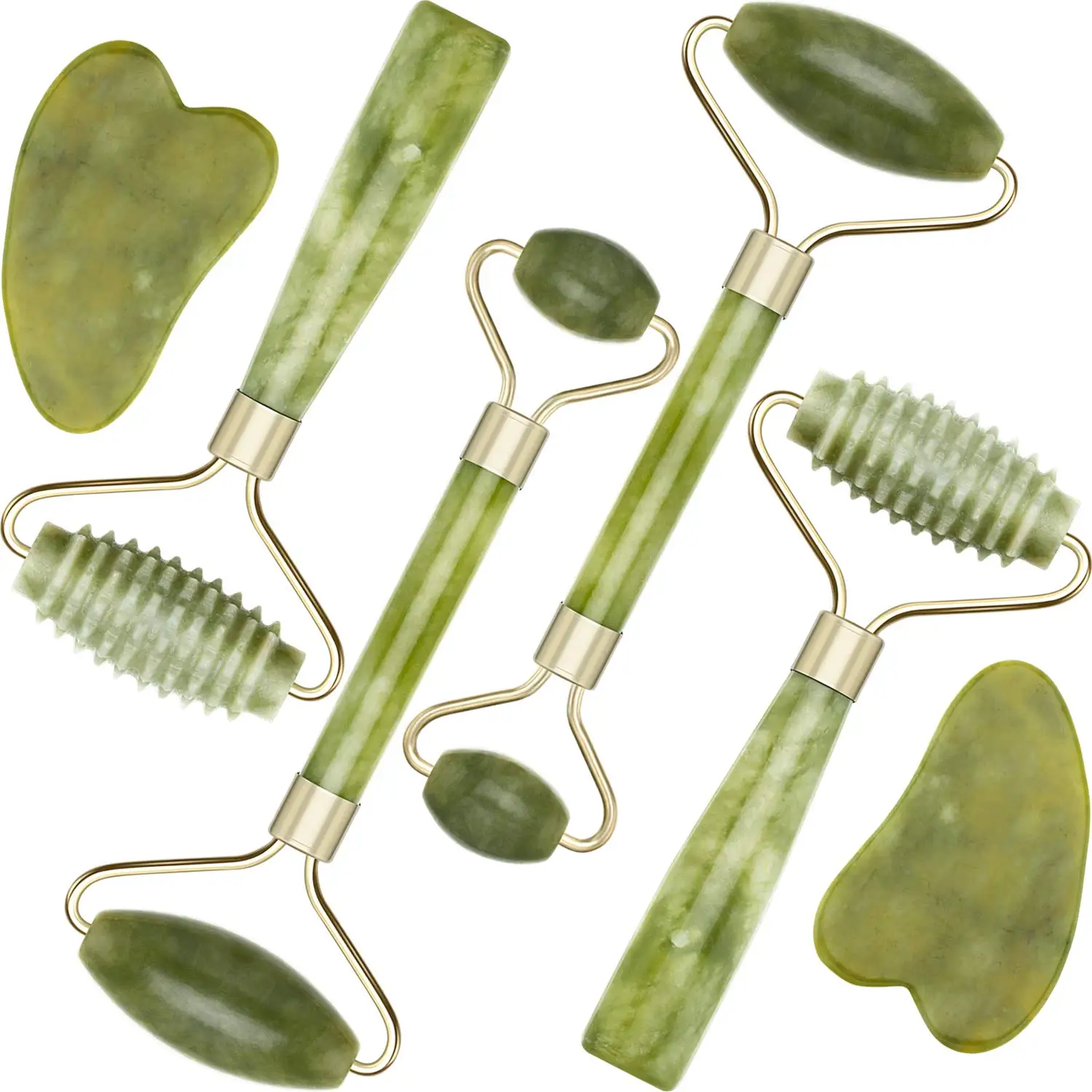 6 Pack Jade Facial Ridged Kits Skin Roller SPA Gua;