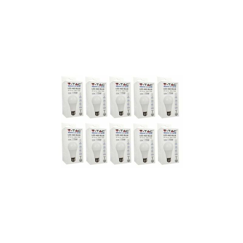 V-TAC Pack 10 Lampadine LED 10,5W E27 A60 Plastica 4000K - VT-2112 Colore Luce: Naturale Caratteristiche del prodotto 80% di consumo energetico in meno rispetto alle lampadine standard Lunga durata Nessuna emissione di radiazioni UV e radiazioni non ionizzanti Accensione immediata, nessun tempo di riscaldamento Bassa potenza termica Direttamente sostituibile alle lampade ad incandescenza tradizionali Informazione generale Attacco E27 Tipo Lampadina A60 Tipo LED SMD Dati elettrici Potenza 10,5W Potenza EQV. a incandescenza 75W Tensione AC:220-240V Frequenza 50Hz Dati tecnici luce Fascio Luminoso° 200° Colore della luce Bianco naturale Temperatura di colore 4000K Flusso luminoso (lm) 1055 lm Dettagli corpo Materiale Termoplastico Funzionalità IP Protezione IP20 Dimensione Altezza 120 mm Diametro 60 mm Cosa comprende l'offerta: nr. 10 V-TAC Pack 10 Lampadine LED 10,5W E27 A60 Plastica 4000K - VT-2112 Garanzia 2 anni