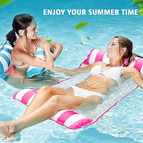 2 Pack Letto Galleggiante, Galleggiante Gonfiabile Amaca Gonfiabile 4 in 1 Galleggiante Sdraio Galleggiante, Nuoto Gonfiabile Galleggiante per Adulti e Bambini Portabevande Gonfiabile+Pompa Infalata