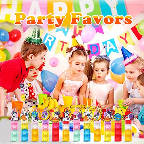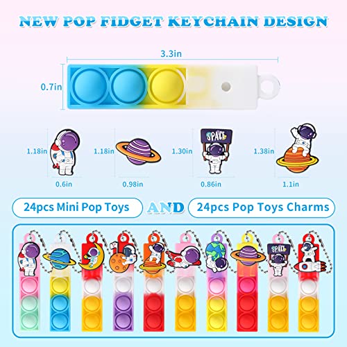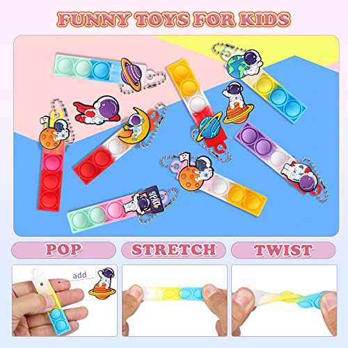 24 Pack Mini Pop Fidget It Portachiavi con Ciondoli di Astronauta, Regali di Compleanno, Riempitivi per Borse delle Feste, Classe Premi, Giocattolo Sensoriale in Silicone per Adulti e Bambini