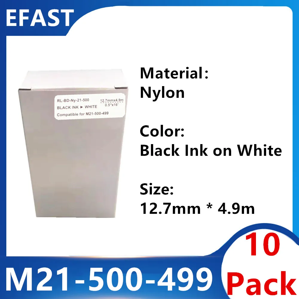 10 Pack M21 500 499 Nylon Label Ribbon For BMP21 PLUS Printer Black On White M21-500-499 12.7mm * 4.9m