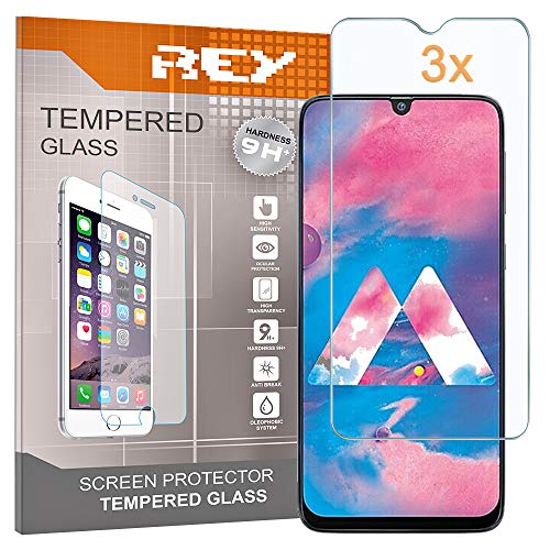 REY Pack 3X Pellicola salvaschermo per Samsung Galaxy M30 - A50 - A30 - A20 - A50s - A30s - M30s - M21 - M31 - M32, Pellicole salvaschermo Vetro Temperato 9H+, di qualità Premium