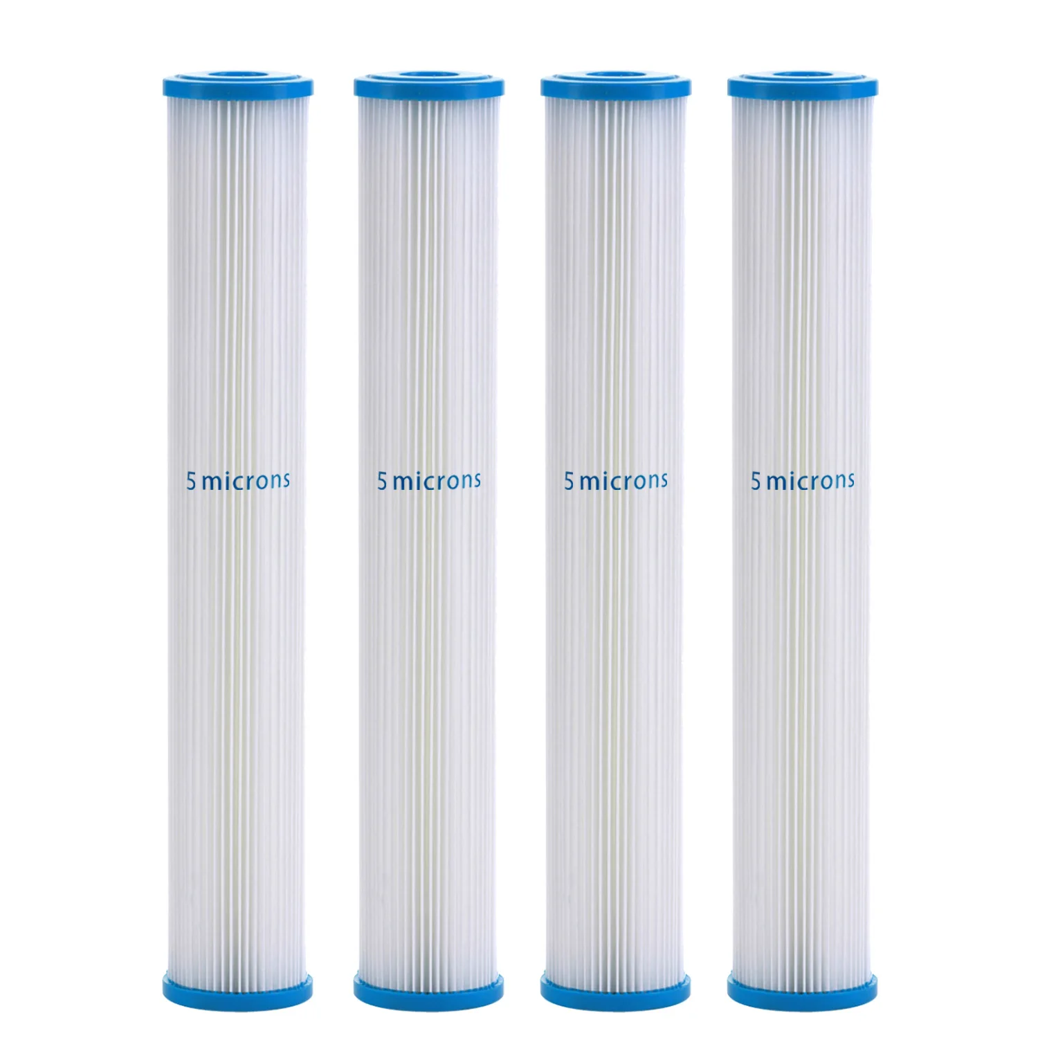 4 PACK OF 5 μm Polyester Pleated Sediment Water Filter Replacement Whole House, 2.5" x 20", Washable & Reusable