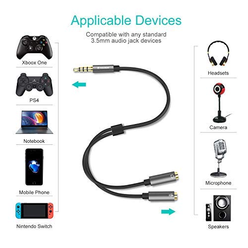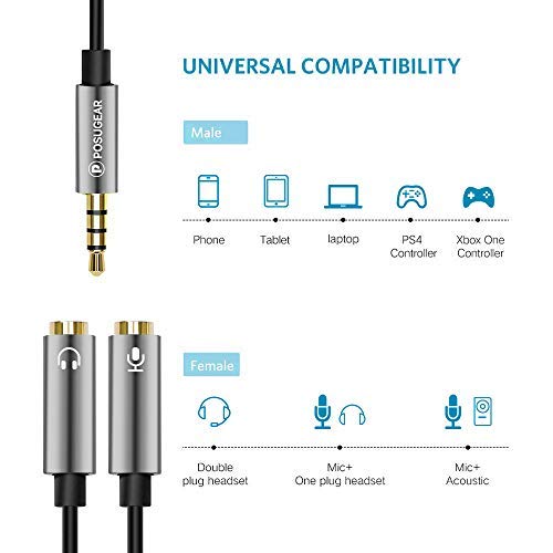 2 Pack - POSUGEAR Adattatore Splitter Jack 3,5mm, Adattatore Jack 3.5mm Maschio a Doppia 3.5mm Femmina Sdoppiatore Microfono Cuffie Cavo Compatibile con, Telefoni Cellulari, Lettori Xbox One[CTIA]...