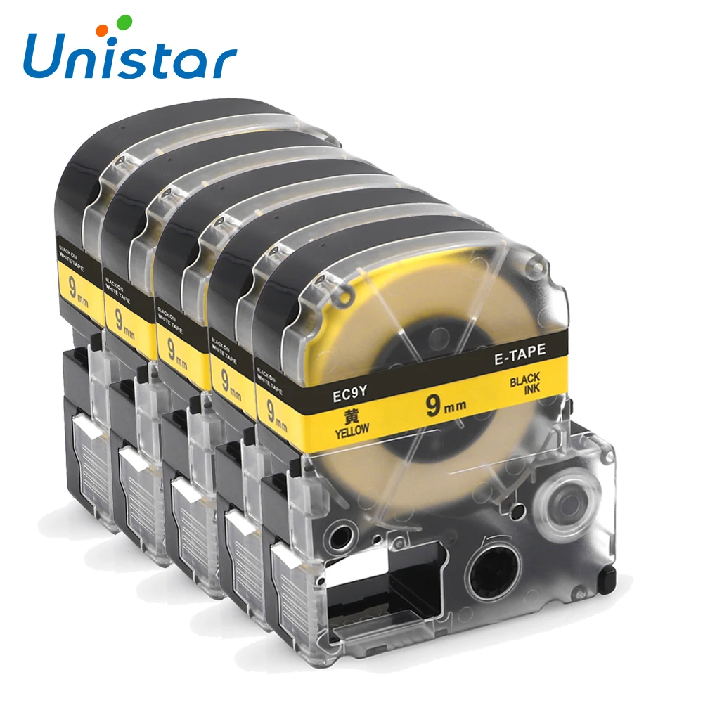 5 Pack SC9Y 9mm Black on Yellow Printer Tape Compatible EPSON Label Printer Ribbon Tape Also For Kingjim TEPRA Tape Printers