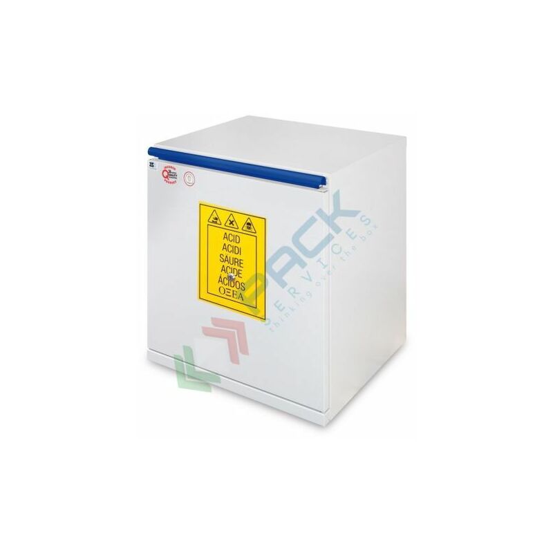 ARMADIO DI SICUREZZA PER LO STOCCAGGIO COMBINATO DI PRODOTTI CHIMICI E ACIDI Armadio di sicurezza combinato ideale per stoccaggio di prodotti chimici e acidi, Mis. esterne 495 L x 520 P x 720 H mm, Mis. interne 430 L x 430 P x 630 H mm, capacità 12 bottiglie da 1 Lt, peso 56 Kg. Armadio per prodotti chimici realizzato in lamiera di acciaio con vernice antiacido, spessore della lamiera 1;