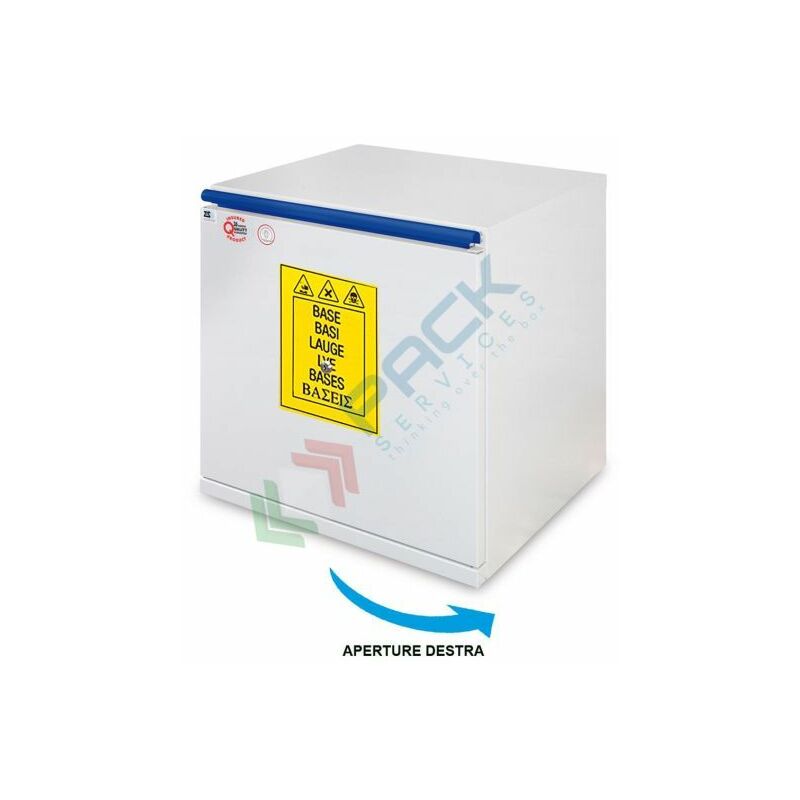 ARMADIO DI SICUREZZA PER LO STOCCAGGIO COMBINATO DI PRODOTTI CHIMICI E BASICI Armadio di sicurezza per lo stoccaggio combinato di prodotti chimici e basici, Mis. esterne 595 L x 520 P x 720 H mm, Mis. interne 53 ARMADIO DI SICUREZZA PER LO STOCCAGGIO COMBINATO DI PRODOTTI CHIMICI E BASICI Armadio di sicurezza per lo stoccaggio combinato di prodotti chimici e basici, Mis. esterne 595 L x 520 P x 720 H mm, Mis. interne 53 vernice antiacido. Le finiture interne sono realizzate in laminato melaminico con alta resistenza ai vapori aggressivi. Pannelli agglomerato idrofugo. Spessore della lamiera 1;