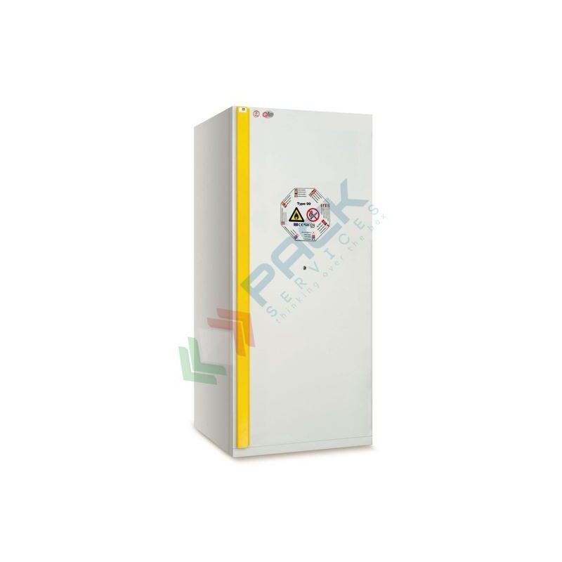 ARMADI DI SICUREZZA PER LO STOCCAGGIO DI PRODOTTI INFIAMMABILI Certificati secondo le norme EN14470-1 Type 90 e EN 16121 Armadio di sicurezza per lo stoccaggio di prodotti infiammabili realizzato in lamiera di acciaio elettrogalvanizzata dello spessore di 1 - 1,5 mm, piegata a freddo, Mis. esterna 895 L x 600 P x 2050 H mm, Mis. interna 796 L x 446 P x 1540 H mm, chiusura automatica delle ante quando la temperatura ambiente supera i 50 °C. L'armadio di sicurezza per infiammabili è certificato secondo le norme EN14470-1 e EN16121, garantisce resistenza al fuoco certificata 90 min. Armadio con 3 ripiani in acciaio inox (carico max 70 Kg distribuiti uniformemente) + 1 vasca con griglia (capacità 25 litri), capacità di stoccaggio 128/160 bottiglie da 1 Litro per armadio, apertura dell'anta ad incavo a destra. Colore grigio. Caratteristiche tecniche: Misura esterna: 895 L x 600 P x 2050 H mm Mis. interna: 796 L x 446 P x 1540 H mm Accessori in dotazione: 3 ripiani in acciaio inox (carico