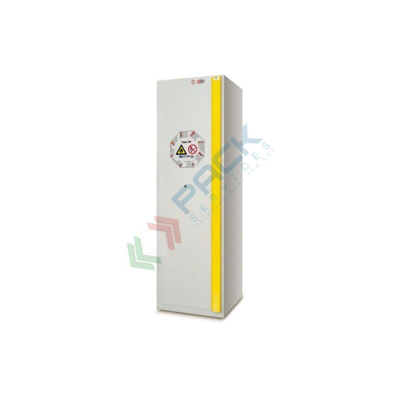 ARMADI DI SICUREZZA PER LO STOCCAGGIO DI PRODOTTI INFIAMMABILI Certificati secondo le norme EN14470-1 Type 90 e EN 16121 Armadio di sicurezza per lo stoccaggio di prodotti infiammabili realizzato in lamiera di acciaio elettrogalvanizzata dello spessore di 1 - 1,5 mm, piegata a freddo, Mis. esterna 595 L x 600 P x 2050 H mm, Mis. interna 496 L x 446 P x 1540 H mm, chiusura automatica delle ante quando la temperatura ambiente supera i 50 °C. L'armadio di sicurezza per infiammabili è certificato secondo le norme EN14470-1 e EN16121, garantisce resistenza al fuoco certificata 90 min. Armadio con 3 ripiani in acciaio inox (carico max 60 Kg distribuiti uniformemente) + 1 vasca con griglia (capacità 20 litri), capacità di stoccaggio 80/100 bottiglie da 1 Litro per armadio, apertura dell'anta ad incavo a sinistra. Colore grigio. Caratteristiche tecniche: Misura esterna: 595 L x 600 P x 2050 H mm Mis. interna: 496 L x 446 P x 1540 H mm Accessori in dotazione: 3 ripiani in acciaio inox (carico