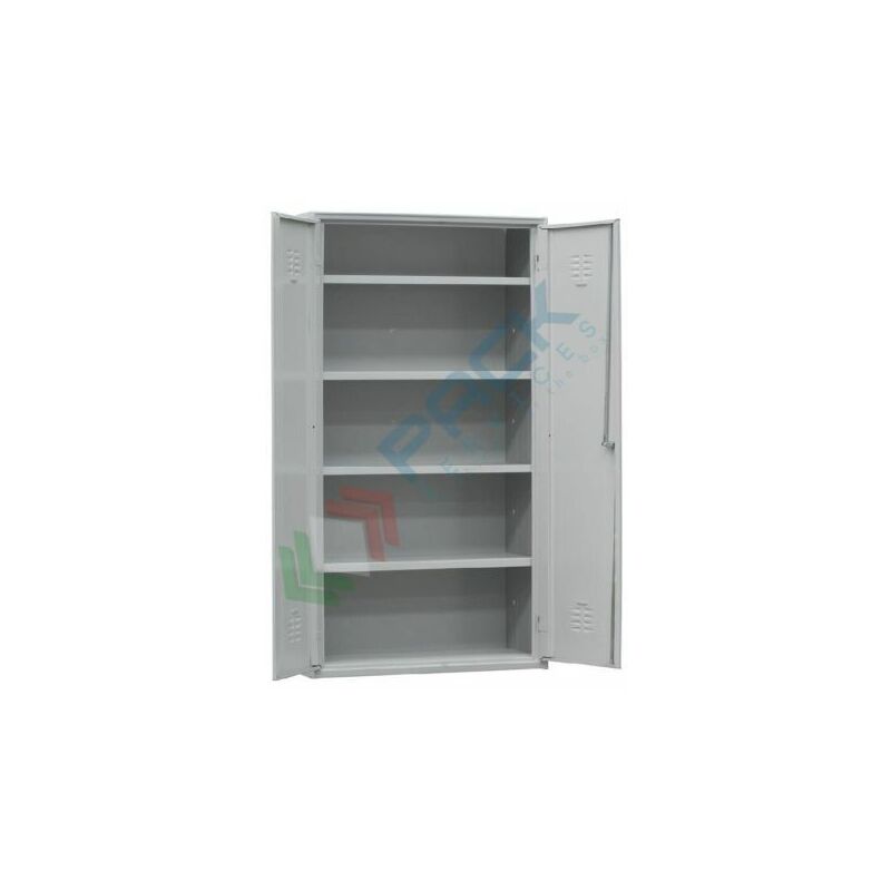 ARMADIETTI IN METALLO MULTI USO, ANTE BATTENTI Armadi contenitori multi uso in lamiera d'acciaio profilata prima scelta spessore 6/10. Armadietti in metallo con ante rinforzate dotate di feritoie di aerazione nella parte superiore ed inferiore. Armadi metallici dotati di cerniere interne antiscasso, bordo frontale perimetrale arrotondato anti urto raggio 6 mm e nervature longitudinali su fianchi e porte. Gli armadietti in metallo dispongono di asole sul tetto per consentire unottima circolazione dellaria. Armadietti multiuso con sistema di chiusura opzionabile tra maniglia in metallo lucchettabile a frizione con sistema anti effrazione o serratura a cilindro con doppia chiave in dotazione. Colore di serie del corpo e delle ante grigio RAL 7035. Armadi in metallo con ante battenti, con 4 ripiani rettangolari spostabili su asole in 8 posizioni differenti. Trattamento delle superfici: a mezzo fosfato di ferro pesante come preparazione alla verniciatura che avviene per elettrodeposizione