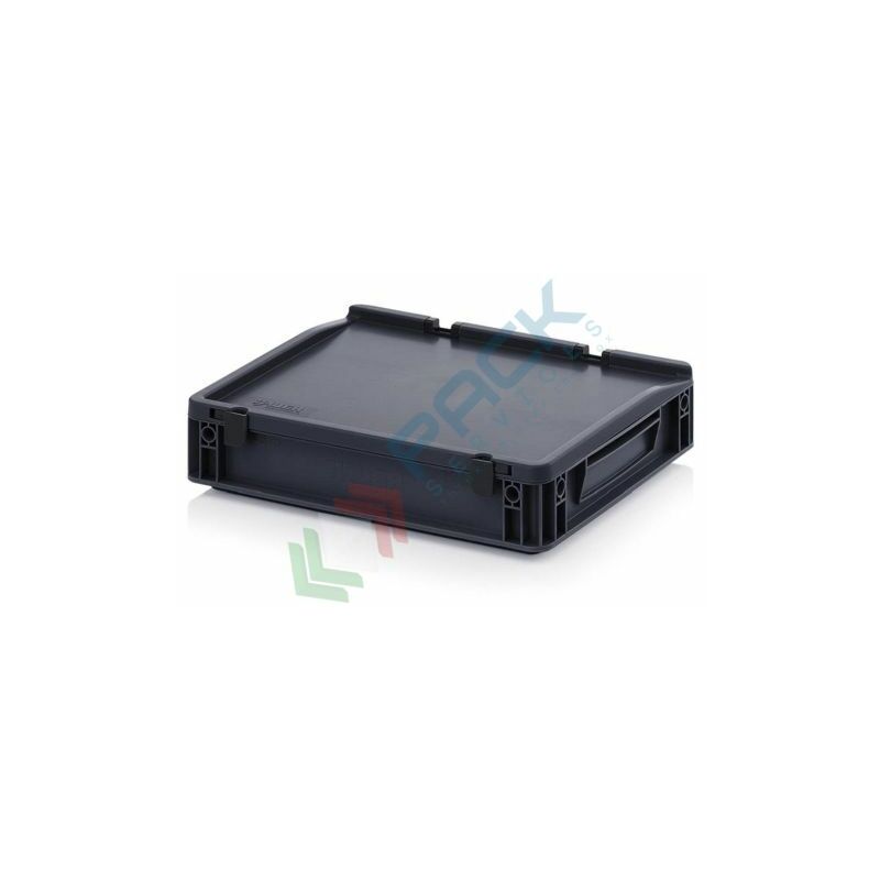 CASSETTA IN PLASTICA ANTISTATICA E CONDUTTIVA Contenitore in plastica, conduttivo e antistatico, capacità 6,9 Lt, Mis. esterne 400 L x 300 P x 90 H mm, Mis. interne 370 L x 270 P x 52 H mm. Cassetta in plastica sovrapponibile, norma Europa, con coperchio integrato. La cassa in plastica, il coperchio e la cerniera sono realizzati in materiale sintetico conduttivo, quindi adatti per l'immagazzinaggio e il trasporto in sicurezza di merce elettronica. Cassetta di plastica impilabile anche con coperchio, robusta e fornita in tutti i formati Euro attuali. Il coperchio è incluso e fornisce maggiore protezione al contenuto. Base e pareti chiuse, maniglie chiuse. Cassetta conduttiva e antistatica in polipropilene (PP), NON idonea al contatto alimentare. Con l'utilizzo di contenitori antistatici si evitano cariche elettrostatiche;