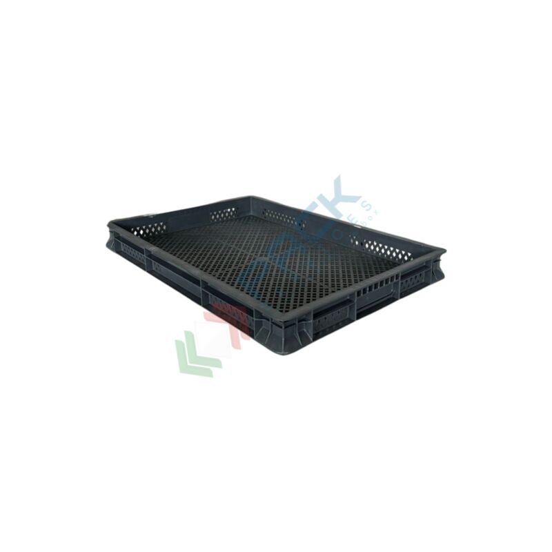 CASSETTA SOVRAPPONIBILE NORMA EUROPA FORATA Contenitore in plastica sovrapponibile Norma Europa, capacità 9 Lt, con misura esterna: 600 L x 400 P x 50 H mm e misura interna: 569 L x 366 P x 40 H mm. La cassetta presenta base, pareti forate e maniglie chiuse. Contenitore realizzato in PP (Polipropilene). Colore grigio scuro. Scatola in plastica NON idonea al contatto con alimenti. Le cassette formato EURO sono distinguibili da altezza, misura della base, dimensioni esterne ed interne. E' possibile scegliere tra modelli con maniglie passanti che ne agevolano la presa e la movimentazione e sono indicate per il trasporto di carichi pesanti;