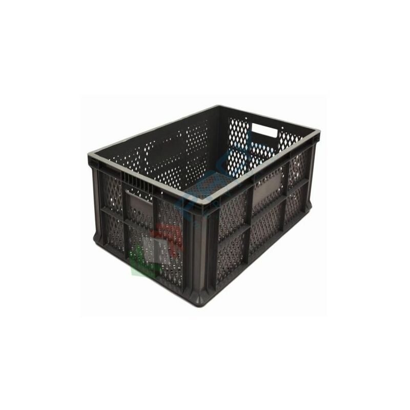 CASSETTA SOVRAPPONIBILE NORMA EUROPA FORATA Contenitore in plastica sovrapponibile Norma Europa, capacità 65 Lt, con misura esterna: 600 L x 400 P x 330 H mm e misura interna: 569 L x 366 P x 315 H mm. La cassetta presenta base, pareti forate e maniglie passanti. Contenitore realizzato in PP (Polipropilene). Colore grigio scuro. Scatola in plastica NON idonea al contatto con alimenti. Le cassette formato EURO sono distinguibili da altezza, misura della base, dimensioni esterne ed interne. E' possibile scegliere tra modelli con maniglie passanti che ne agevolano la presa e la movimentazione e sono indicate per il trasporto di carichi pesanti;
