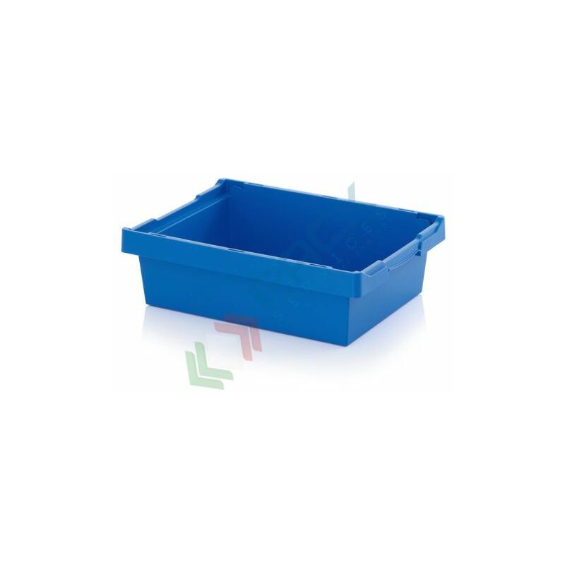 Contenitore in plastica inseribile e sovrapponibile, capacità 28,2 Lt, Mis. 600 L x 400 P x 170 H mm, con base e pareti chiuse, in polipropilene (PP). Cassetta in plastica riutilizzabile, particolarmente versatile grazie alla sua forma leggermente conica. Cassa in plastica impilabile una dentro l'altro da vuota, con poco ingombro oppure una sopra l'altra con il coperchio o utilizzando delle staffe. Contenitore industriale poco ingombrante in caso di trasporto a vuoto, infatti permette di risparmiare fino al 75% di spazi vuoti in meno. Contenitore riutilizzabile robusto, idoneo al contatto alimentare, colore blu RAL 5015.