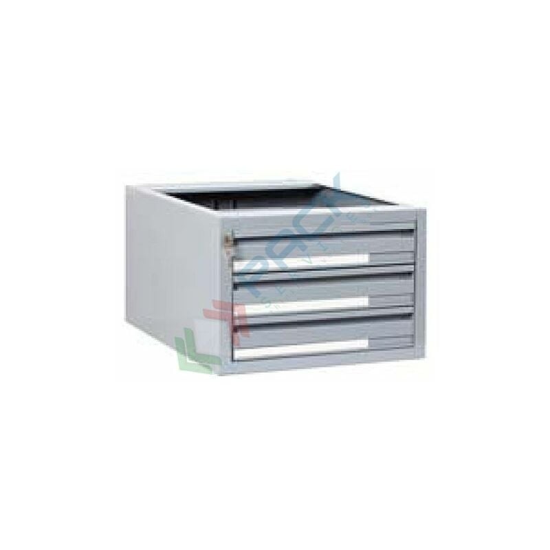 Dimensioni: cm 50 x 66 x 36 h 3 cassetti da cm 10 h con serratura Colore grigio RAL 7001. Carico massimo: 30/355 Kg Apertura cassetti: 80% circa 52 cm. Realizata in lamiera d'acciaio presso piegata scorrevole su cuscinetti a sfera in acciaio. Completa di serratura tipo Yale con doppia chiave. Dimensione utile interna singolo cassetto L 35 x P 44 x H 10 cm.