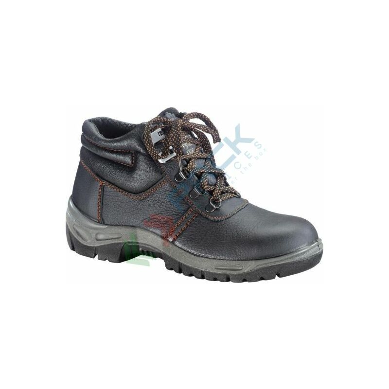 Scarpe da lavoro S1P SRC in crosta bovina. Scarpa protettiva alta con fodera interna in tessuto traspirante, soletta interna amovibile, sfilamento rapido e suola in poliuretano bidensità. Realizzata con puntale in acciaio, lamina in acciaio e chiusura con lacci bicolore. Modello economico. Scarpa antinfortunistica certificata CE, EN ISO 20345. Dispone delle seguenti caratteristiche: (A) Scarpa antistatica, (P) Lamina o inserto antiperforazione, (SRC) Suola antiscivolo (SRA+SRB), (E) Assorbimento di energia nella zona del tallone, (FO) Suola resistente ad olii, idrocarburi e solventi. Colore nero, taglie disponibili dalla 36 alla 47