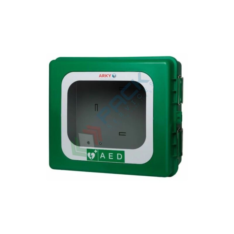 TECA PER DEFIBRILLATORE DA ESTERNO CON RISCALDAMENTO E ALLARME Armadietto impermeabile per defibrillatori DAE con allarme, riscaldamento ed alimentazione a bassa tensione, Mis. 340 L x 400 P x 200 H mm, ideale per ambienti esterni. La teca per defibrillatore è ideale per la collocazione del defibrillatore in ambienti esterni, dove è di fondamentale importanza garantire condizioni di conservazione consone al mantenimento del defibrillatore ready to use. L'armadietto DAE garantisce totale protezione dal contatto con liquidi e sporco. Dispositivo salvavita. La teca per DAE dispone di un elemento interno riscaldante, funzionante a bassa tensione da 24V. Alimentatore compreso nella dotazione. L'armadio per DAE permette la conservazione del defibrillatore in presenza di condizioni climatiche estreme, con temperature compreso tra -10°C e + 50°C. Colore verde. Armadietto per defibrillatore per esterni con allarme, riscaldamento ed alimentazione a bassa tensione. Ideale per la collocazione del
