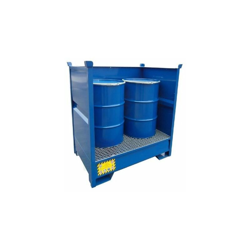 VASCA DI CONTENIMENTO LIQUIDI PER 2 FUSTI 200 LT, PARETI IN LAMIERA Vasca di raccolta liquidi in acciaio con pareti in lamiera laterali anticaduta, ideale per lo stoccaggio in sicurezza di 2 fusti 200 Lt da posizionare direttamente su grigliato. Vasca di stoccaggio ideale per il contenimento di liquidi, oli, vernici, soluzioni alcaline, carburante, olio esausto, solventi, diluenti, sostanze chimiche, infiammabili impiegate nei processi industriali e nei laboratori. La vasca di stoccaggio viene utilizzata per prevenire eventuali sversamenti di sostanze pericolose ed inquinanti negli ambienti di lavoro o all'interno di falde acquifere ed eventuali danni alla salute dei lavoratori. Vasca di contenimento con parenti in lamiera Mis.. 1350 L x 860 P x 1460 H mm, realizzata in acciaio al carbonio verniciato, obbligatoria come previsto dal D. Lgs. N.81/2008 che prevede l'utilizzo di una vasca raccolta liquidi se stoccati liquidi infiammabili o inquinanti. Sistema sovrapponibile che permette