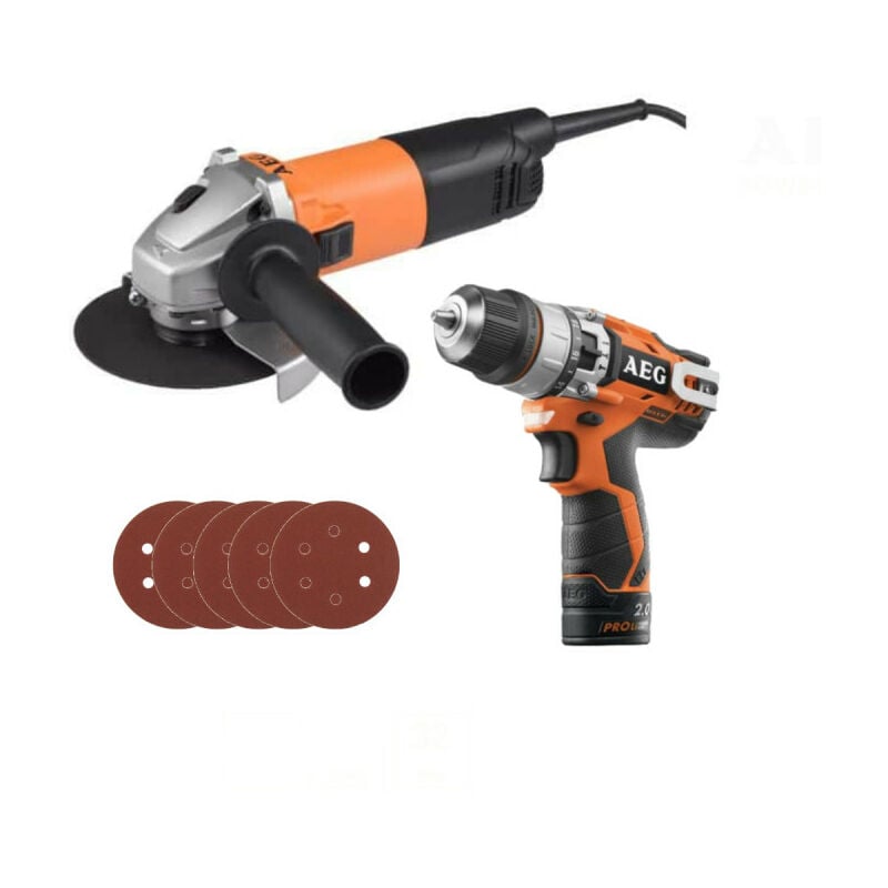 Presentazione: Pack AEG Electric Grinder 800W - WS8-125SK - 5 Disc Sanding Kit - AEG 12V Li-ion Impact Drill, maggiore versatilità con questa confezione di due utensili AEG e il suo kit di levigatura a 5 dischi che comprende un trapano a percussione, una smerigliatrice con un sistema che impedisce alla macchina di ripartire dopo un'interruzione di corrente. AEG è stata leader nello sviluppo di nuovi strumenti per più di 120 anni, fornendo ai professionisti e agli artigiani soluzioni innovative e potenti per i progetti di costruzione e miglioramento della casa. Benefici: Smerigliatrice elettrica AEG 800W 125mm WS8-125SK: Sistema Line Lock Out (LLO) Per una maggiore sicurezza Impedisce il riavvio della macchina dopo un'interruzione di corrente Maggiore durata grazie al cambio in metallo Presa sicura grazie all'impugnatura ergonomica Guardia girevole a 90° Sistema di ventilazione migliorato Trapano a percussione AEG 12V Li-ion: Design ultra ergonomico con una lunghezza di soli 192 mm