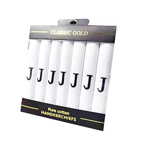 7 Pack Di Uomo's Fazzoletti Di Raso Bianchi Bordati Con E Blu Ricamato Iniziali, J