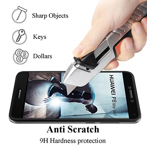 3 Pack - Vetro Temperato per Huawei P8 Lite 2017, Boocoo Pellicola Protettiva in Vetro Temperato Screen Protector per Huawei P8 Lite 2017 Vetro con Durezza 9H, Nero