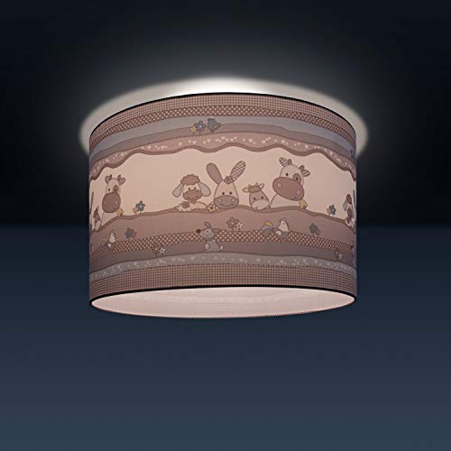 Paco Home Lampada da bambini a soffitto a sospensione camera dei bambini, animale, E27, Paralume: Beige (Ø45.5 cm), Tipo di lampada: Plafoniera nero