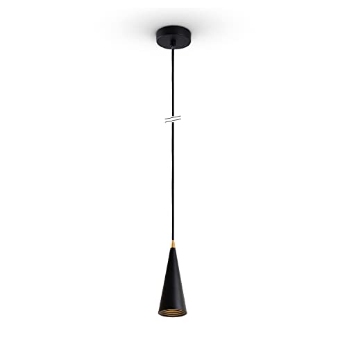 Paco Home Lampada Sospensione Tavolo Da Pranzo Paralume Cucina Vintage Metallo Lampada Soggiorno Soffitto E27, Colore:Nero-Oro, Dimensione apparecchio_Forma:Ø9,5cm