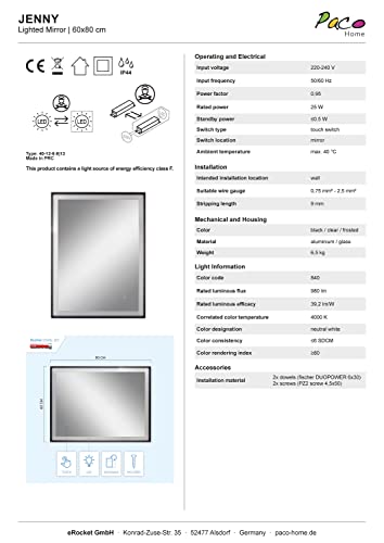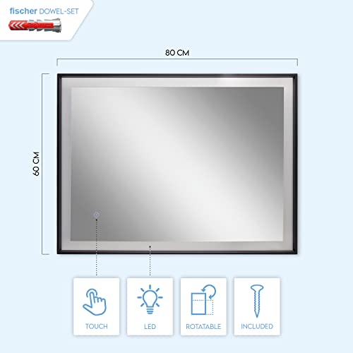 Paco Home Lampada Specchio Per Trucco Con Luce Bagno Illuminazione Indiretta Deco Bagno IP44 Interruttore Touch, Tipo di lampada:Rettangolare (60x80 cm), Colore:Tipo 1
