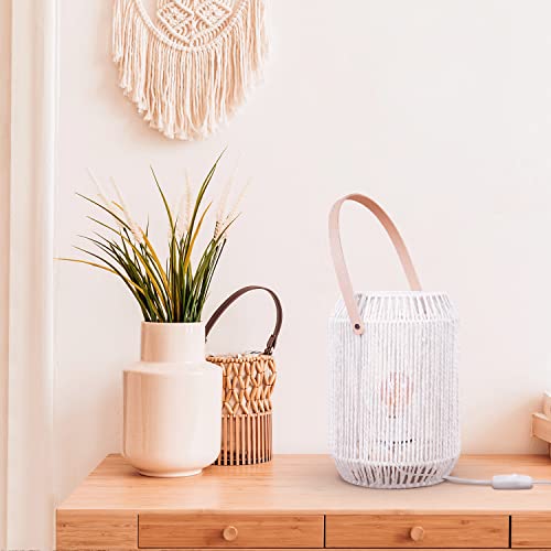 Paco Home Lampada Da Tavolo Lampada Da Comodino Lampada Da Lettura Paralume Cesto Deco Boho E27, Tipo di lampada:Tipo 1, Colore:Bianco