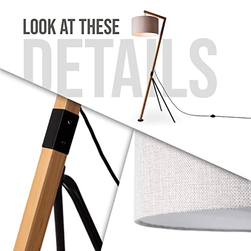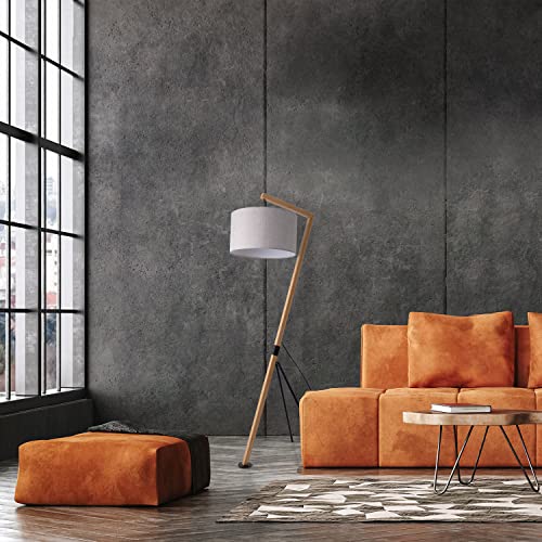 Paco Home Lampada Terra Ufficio Lampada Tavolo Vintage Deco Soggiorno Paralume Lampada Lettura Comodino Braccio E27, Tipo di lampada: Lampada da terra - Bambù, Colore:Grigio (Ø38cm)