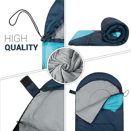 Paco Home Sacco A Pelo Sleeping Bag Camping Traspirante Design Leggero Compatto Interno Esterno Per Viaggi Campeggio, Colore:Dunkelblau-Hellblau, Dimensione:220x70x6cm