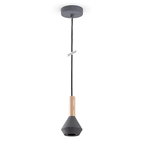 Paco Home Sospensione Tavolo Da Pranzo Cucina Camera Da Letto Deco Soggiorno Soffitto Paralume Acciaio Legno GU10, Colore:Grigio, Dimensione apparecchio_Forma:Ø10cm