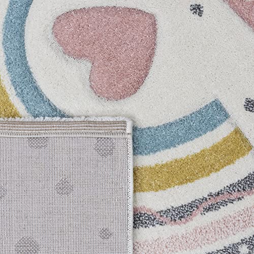 Paco Home Tappeto per Bambini per cameretta Color Pastello con Motivo in 3D di Nuvole e Stelle Arcobaleno, Dimensione:Ø 120 cm Tondo, Colore:Multicolore 2