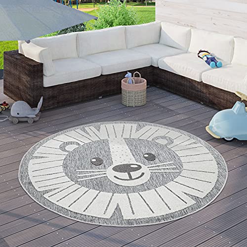 Paco Home Tappeto Bambini Cameretta Tappeto Per Esterno Rotondo Da Gioco Moderno 3D, Dimensione:Ø 120 cm tondo, Colore:Grigio